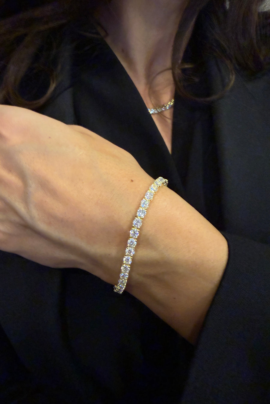 Vi fører armbånd i både guld, hvidguld og sølv med både lab diamanter og lab moissanite.