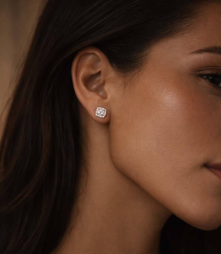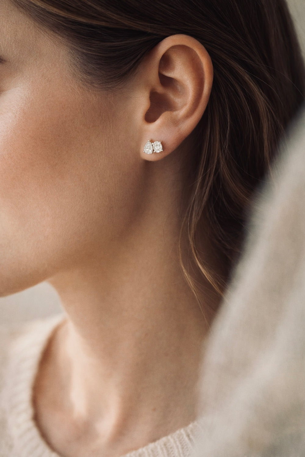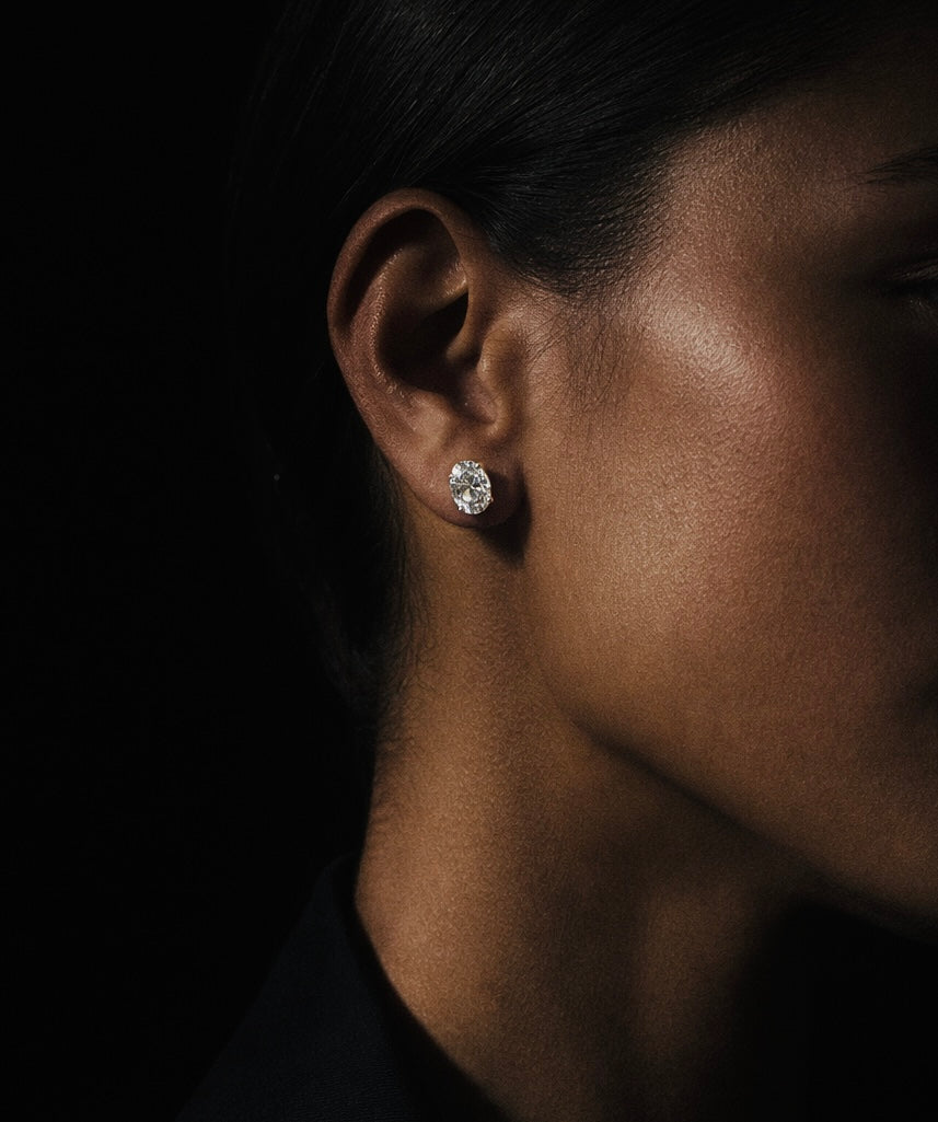 Vi fører øreringe i både guld, hvidguld, rosaguld samt sølv med både lab diamanter og lab moissanite.