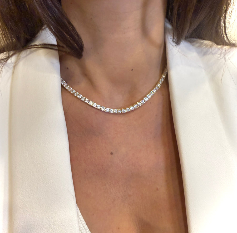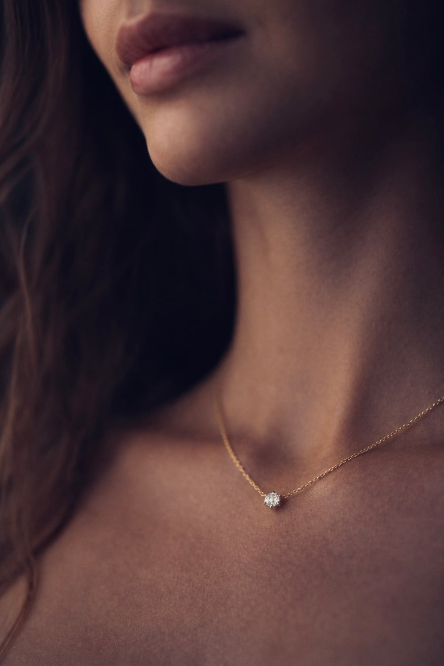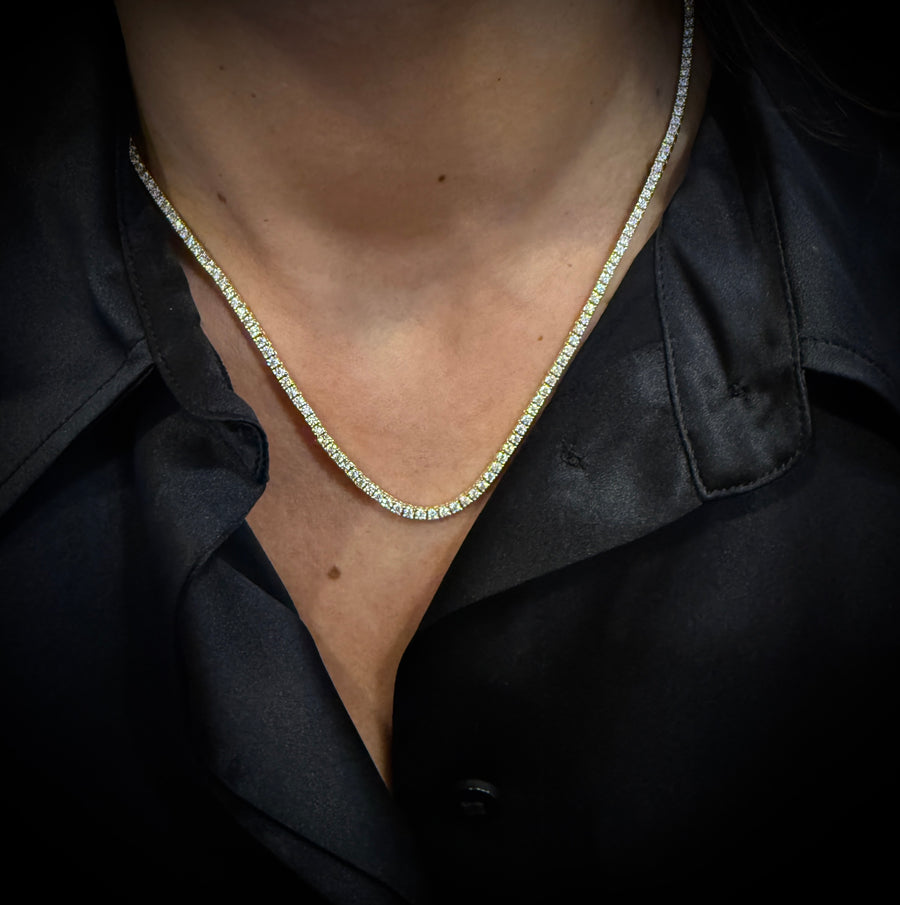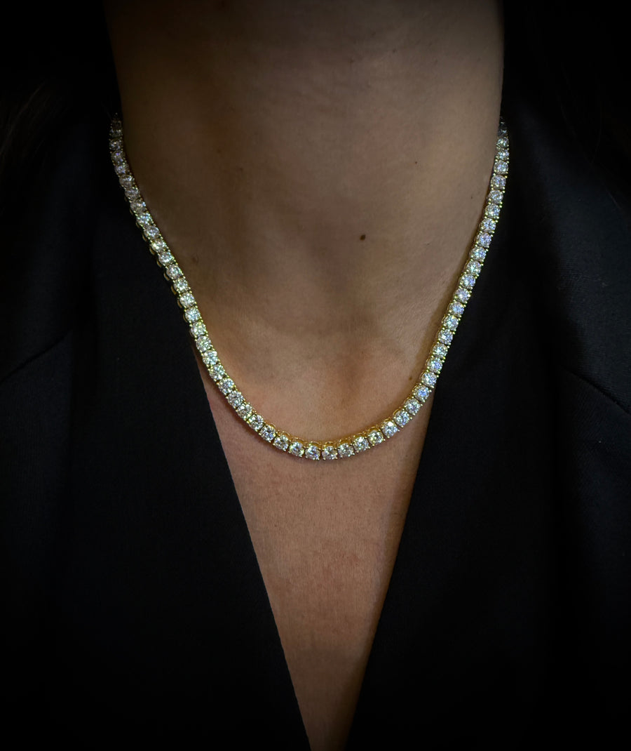 Vi fører halskæder i både guld, hvidguld og sølv med både lab diamanter og lab moissanite.