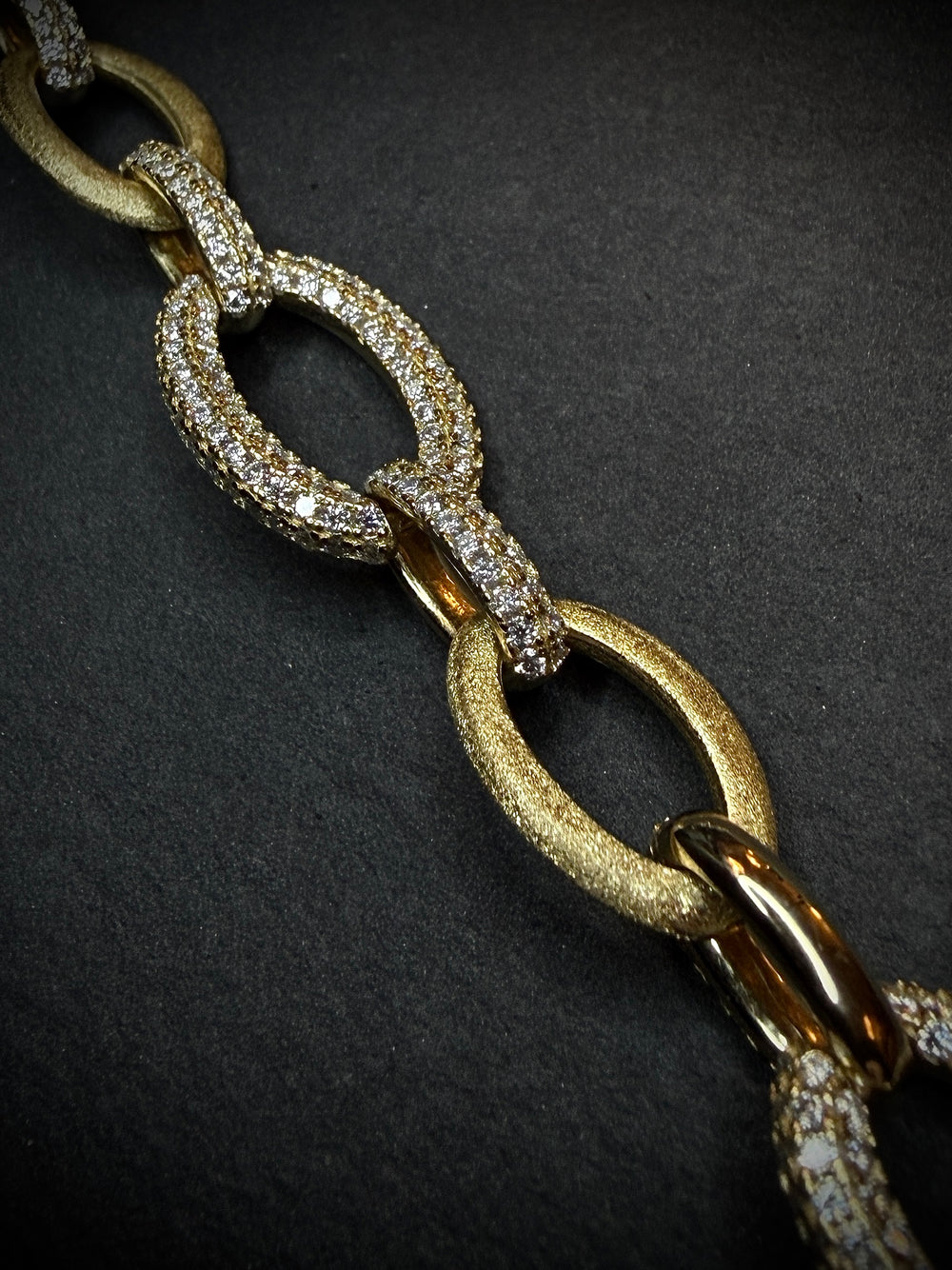 Vælg mellem elegante armbånd i guld, hvidguld og forgyldt sølv – prydet med strålende lab diamanter og moissanite. Kollektionen byder på et væld af udtryk, fra klassisk til moderne, alle skabt med blik for detaljer og eksklusiv finish.