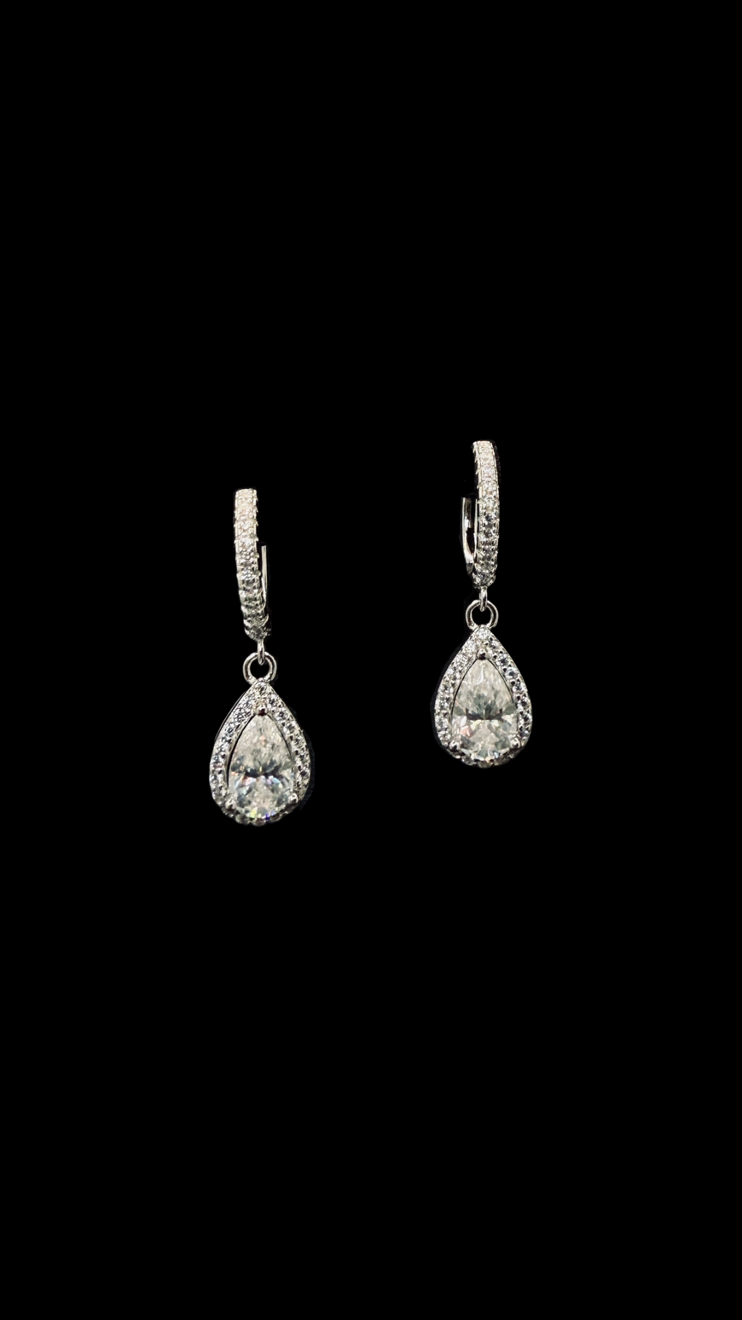 Dråbeøreringe kombinerer klassisk elegance med moderne finesse. De dråbeformede vedhæng i pear cut moissanite fanger lyset med hver bevægelse, mens den pavé-besatte kant tilfører ekstra glans til det samlede udtryk.