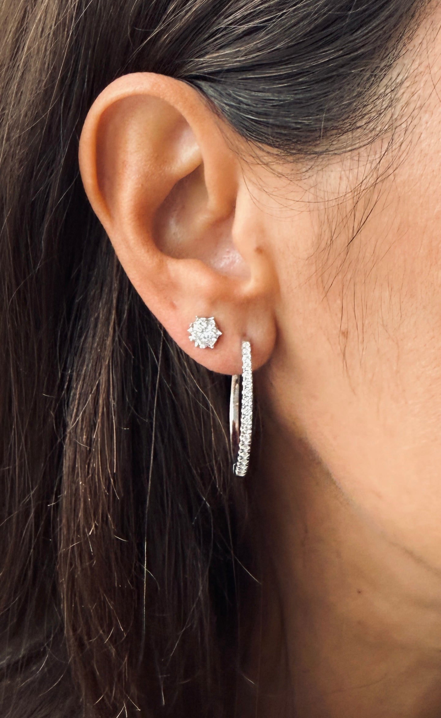 Øreringene er udført i 925 sterling sølv og designet til at kunne bruges både alene og sammen med andre øreringe – perfekte til både hverdag og fest. Med en samlet caratvægt på 0.54 ct. balancerer de lethed og elegance med ubesværet stil.