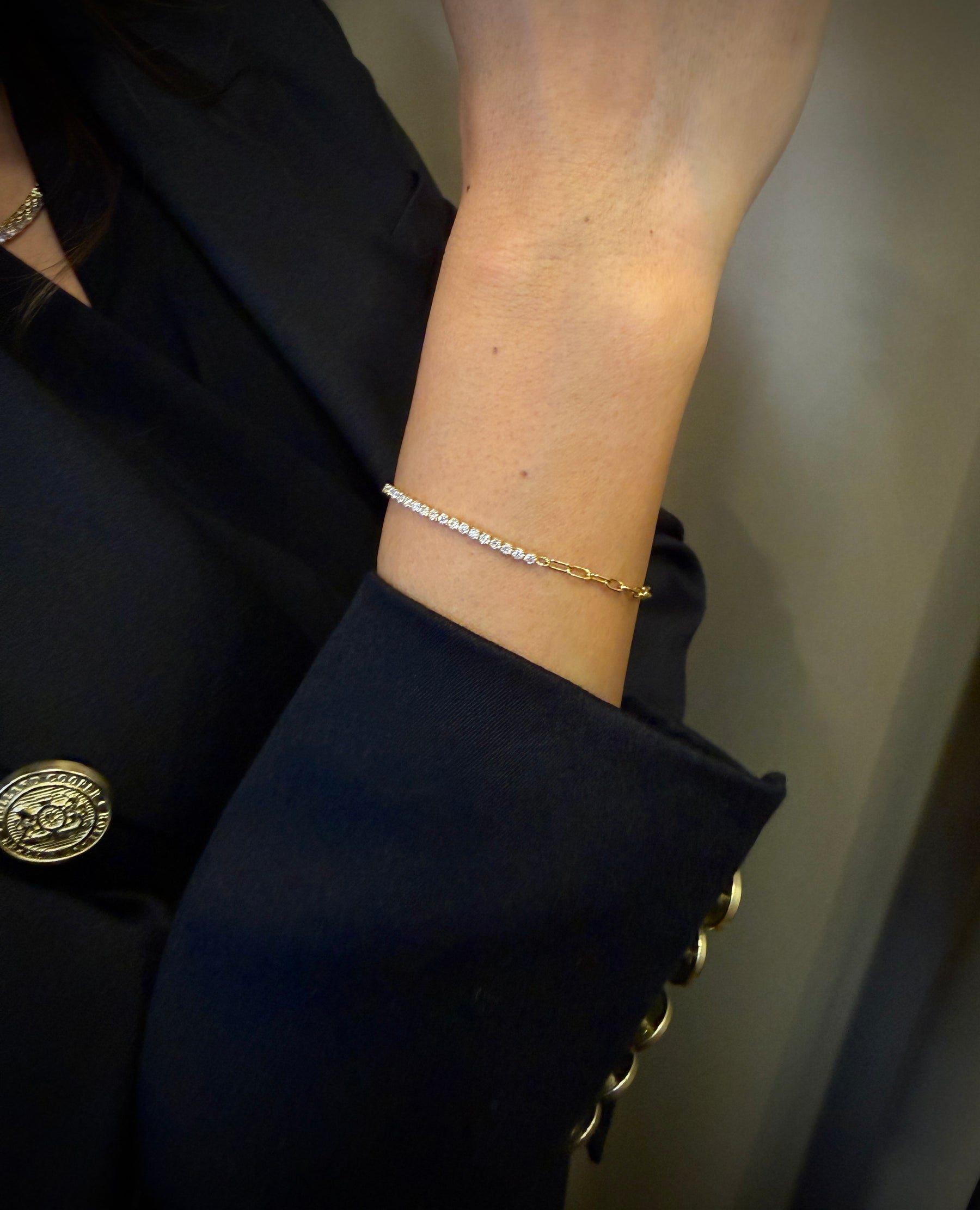 Petite Tennis Armbånd 2mm – Golden Edt. giver dig tennis-klassikeren i en mere let og moderne version. Det er et “half tennis”-armbånd, hvor stenene ligger på halvdelen af armbåndet – så du får en smuk, klassisk front, mens den enkle kæde bagtil gør det behageligt og let at bære hele dagen.